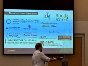 Confercoopetive Confederazione Cooperative Italiane, Cooperatione Trentina, Caviro Group, Latteria Soresina, UCD Global Affairs (Eivind Lange and Mary Puma Fund), UC Agriculture and Natural Resources, UCD Grand Challenges, UCD College of Agricultural and Environmental Sciences, Rich Morris, Development Cooperative (NCG DC), Davis Food Co-op, Littleton Food Co-op.